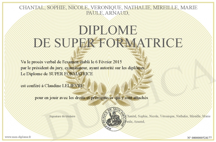 Envoyez par email votre Diplôme de SUPER FORMATRICE personalisé