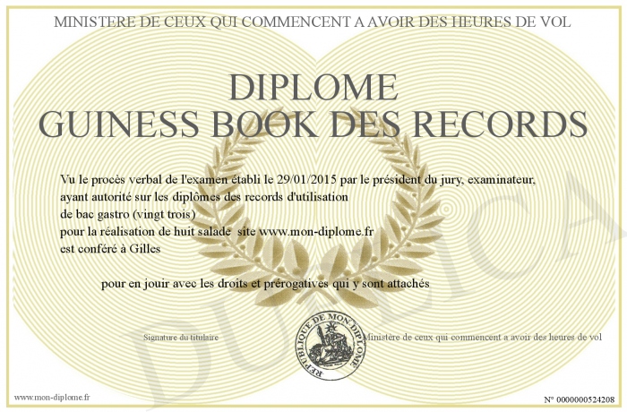 Envoyez par email votre Diplôme guiness book des records personalisé