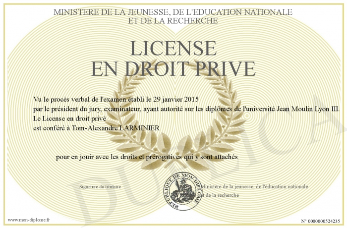 Envoyez par email votre License en droit privé personalisé