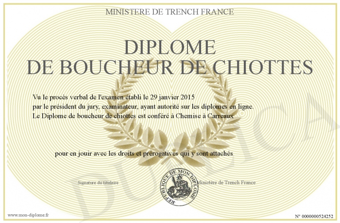 Envoyez par email votre Diplôme de boucheur de chiottes personalisé