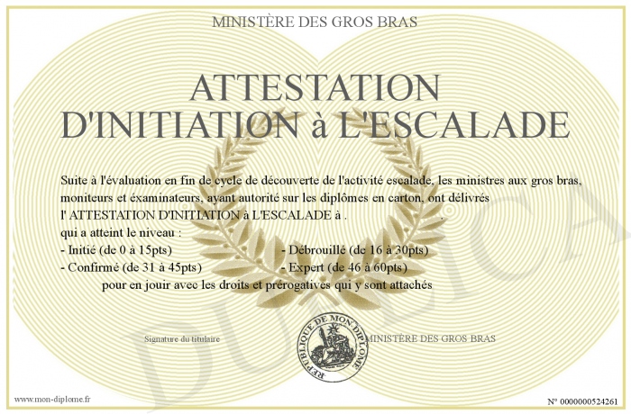 Envoyez par email votre ATTESTATION D'INITIATION à L'ESCALADE personalisé
