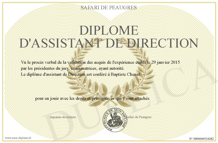 Envoyez par email votre Diplôme d'assistant de Direction personalisé