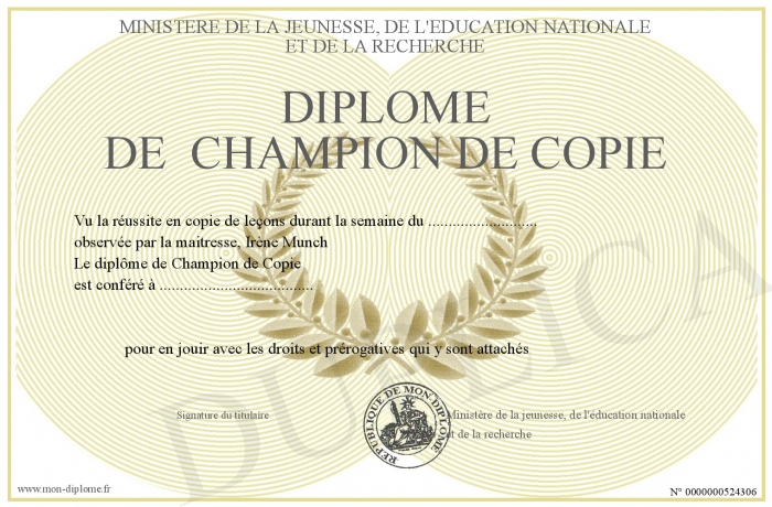 • Diplôme de Champion de Copie