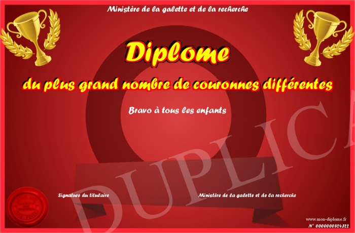 Envoyez par email votre Diplôme du plus grand nombre de couronnes différentes personalisé