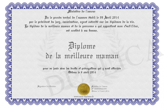 Envoyez par email votre Diplôme de la meilleure maman personalisé