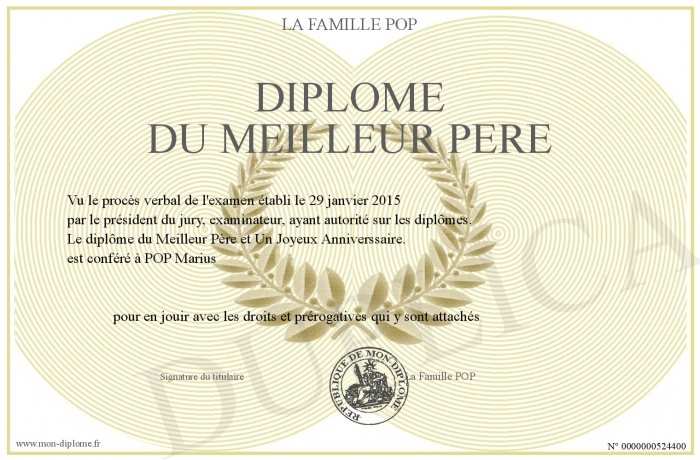 Envoyez par email votre Diplôme du Meilleur Père personalisé