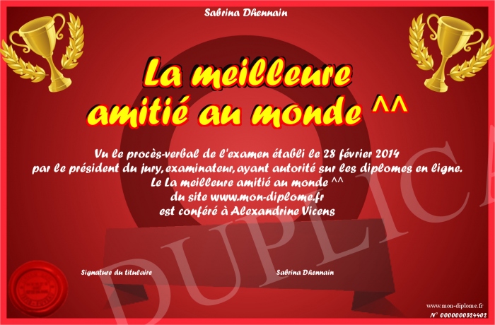 Envoyez par email votre La meilleure amitié au monde ^^ personalisé