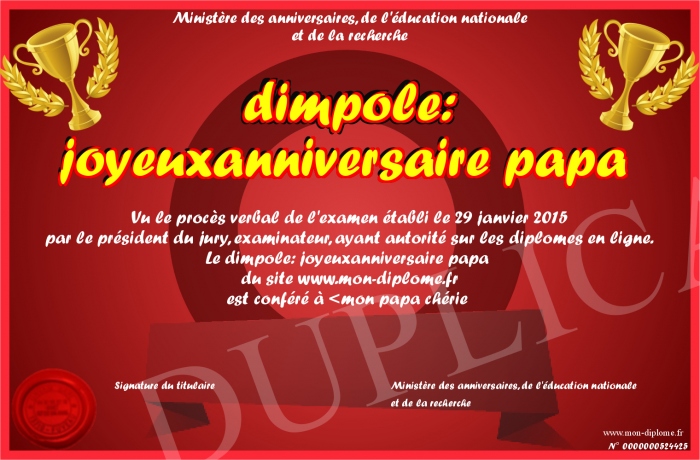 Envoyez par email votre dimpole: joyeuxanniversaire papa personalisé