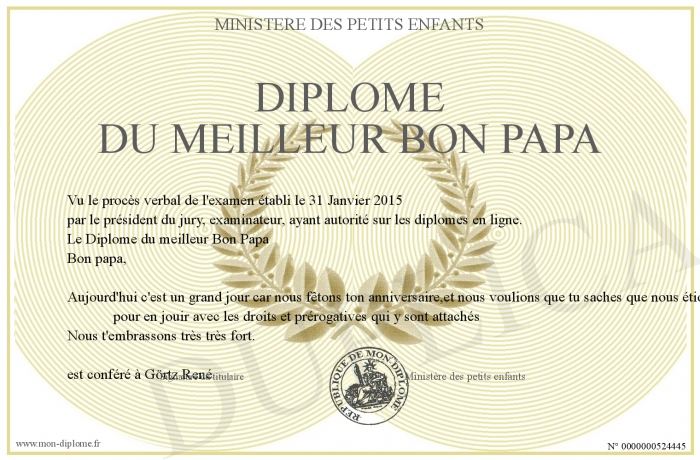 Envoyez par email votre Diplôme du meilleur Bon Papa personalisé