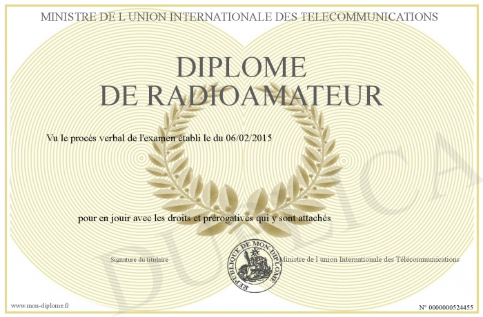 Envoyez par email votre Diplôme de radioamateur personalisé
