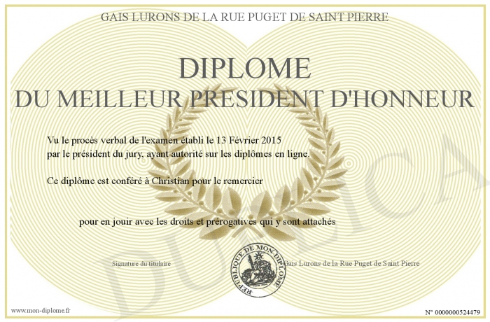 Envoyez par email votre Diplôme du meilleur Président D'Honneur personalisé