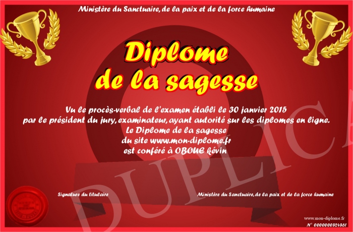 Envoyez par email votre Diplôme de la sagesse personalisé