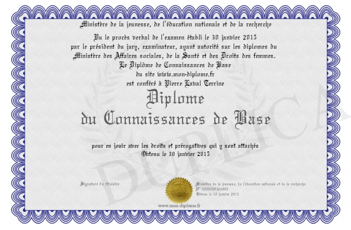 Envoyez par email votre Diplôme du Connaissances de Base personalisé