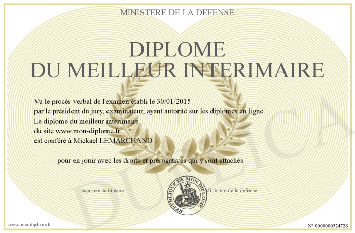 Envoyez par email votre Diplôme du meilleur interimaire personalisé