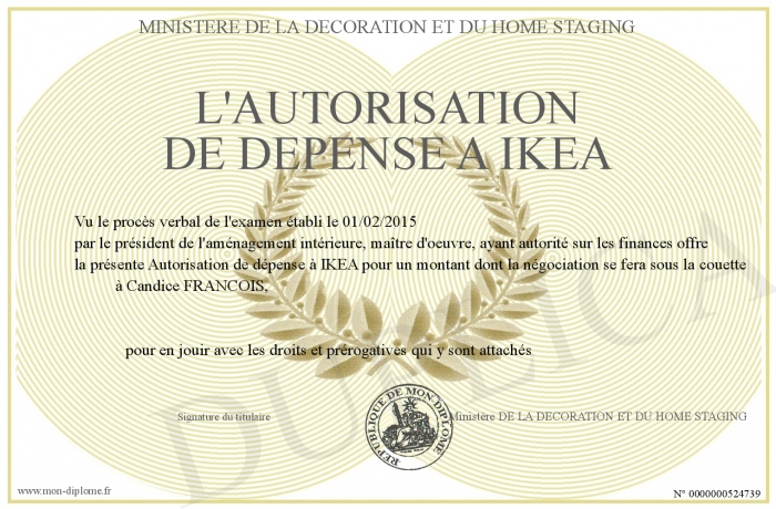 Envoyez par email votre L'Autorisation de dépense a IKEA personalisé