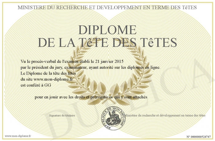 Envoyez par email votre Diplôme de la tête des têtes personalisé
