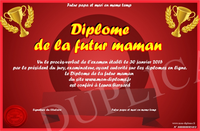 Envoyez par email votre Diplôme de la futur maman personalisé