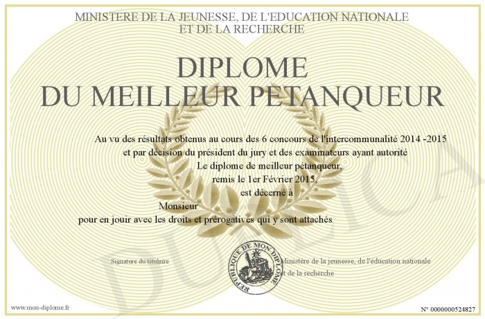 Envoyez par email votre Diplôme du meilleur Pétanqueur personalisé