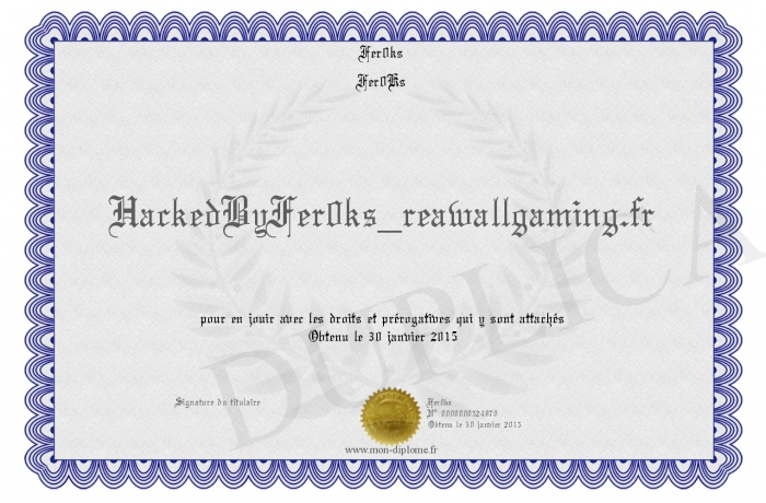 Envoyez par email votre HackedByFer0ks_reawallgaming.fr personalisé