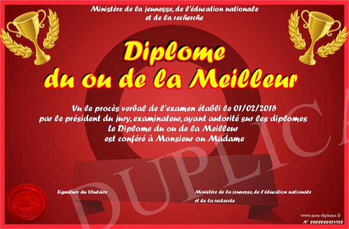 Envoyez par email votre Diplôme du ou de la Meilleur personalisé