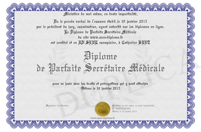 Envoyez par email votre Diplôme de Parfaite Secrétaire Médicale personalisé