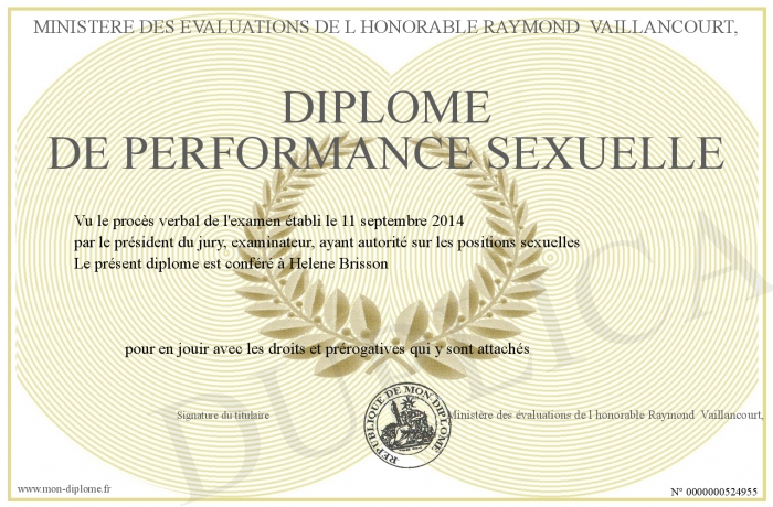 Envoyez par email votre Diplôme de performance sexuelle personalisé