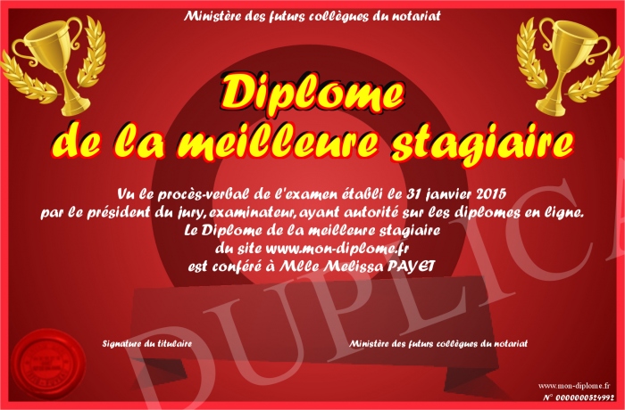 Envoyez par email votre Diplôme de la meilleure stagiaire personalisé