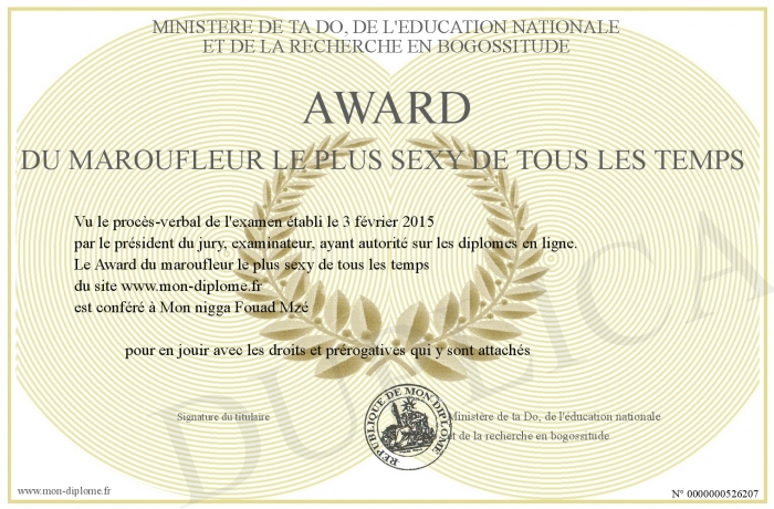 Envoyez par email votre Award du maroufleur le plus sexy de tous les temps personalisé