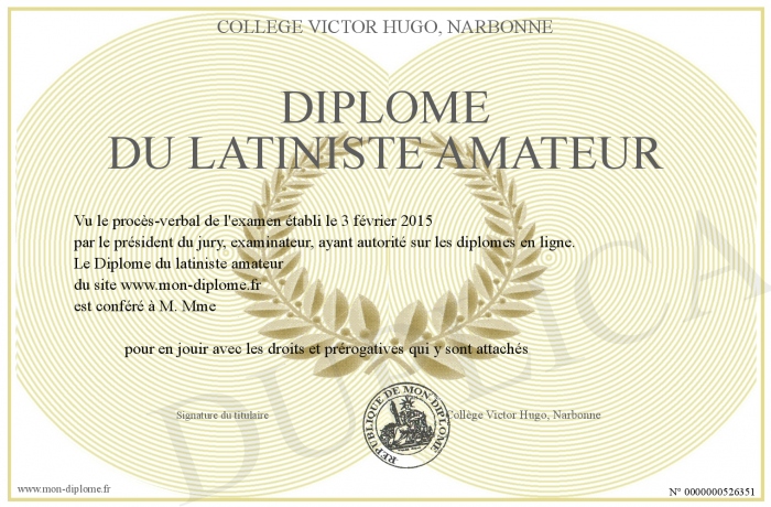 Envoyez par email votre Diplôme du latiniste amateur personalisé