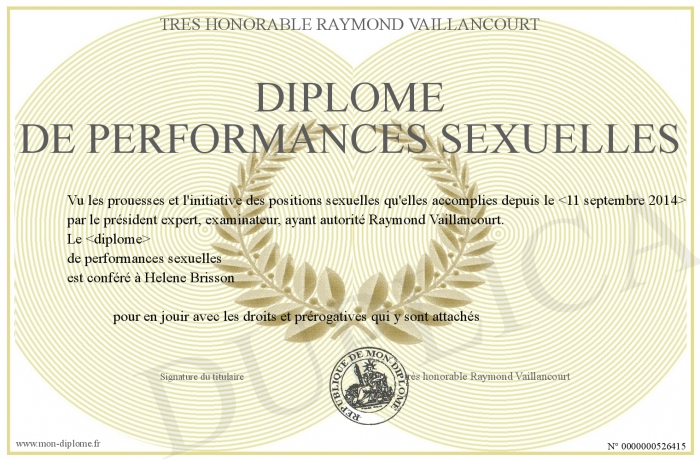 Envoyez par email votre Diplôme de performances sexuelles personalisé