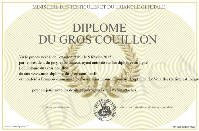 Envoyez par email votre Diplôme du Gros couillon personalisé