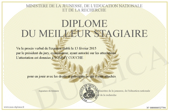 Envoyez par email votre Diplôme du meilleur stagiaire personalisé