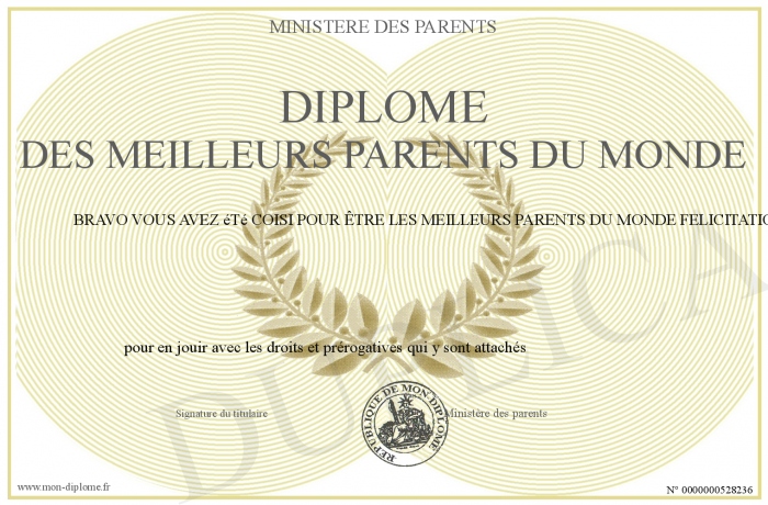 Envoyez par email votre Diplôme des meilleurs parents du monde personalisé