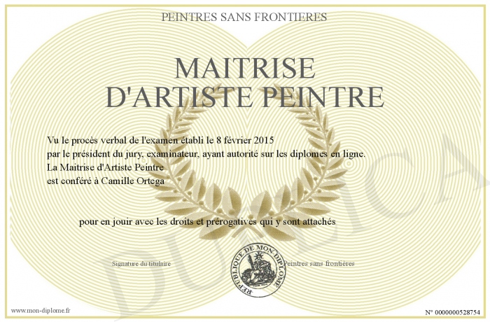 Envoyez par email votre Maitrise d'Artiste Peintre personalisé