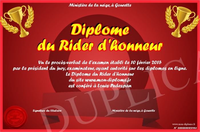 Envoyez par email votre Diplôme du Rider d'honneur personalisé