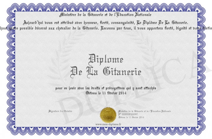 Envoyez par email votre Diplôme De La Gitanerie personalisé