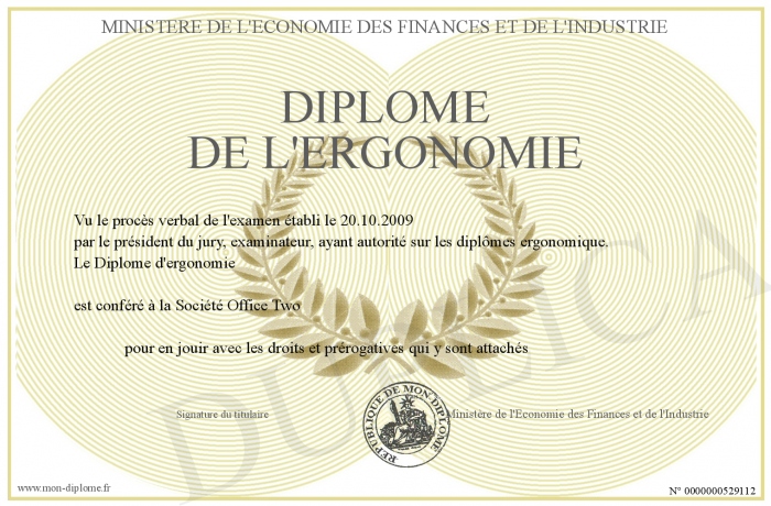 Envoyez par email votre Diplôme de l'ergonomie personalisé