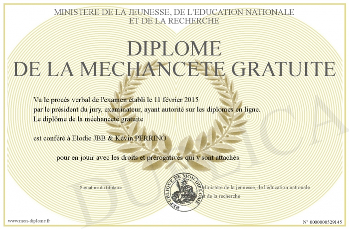 Envoyez par email votre Diplôme de la méchanceté gratuite personalisé