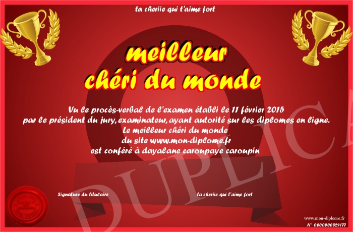 Envoyez par email votre meilleur chéri du monde personalisé