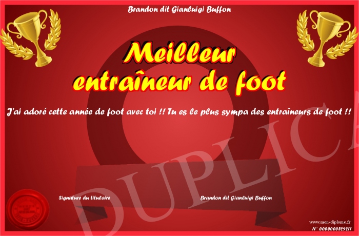 Envoyez par email votre Meilleur entraîneur de foot personalisé