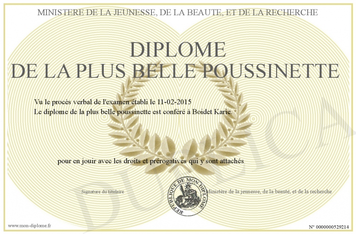 Envoyez par email votre Diplôme de la plus belle poussinette personalisé