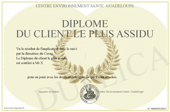 • Diplôme du client le plus assidu