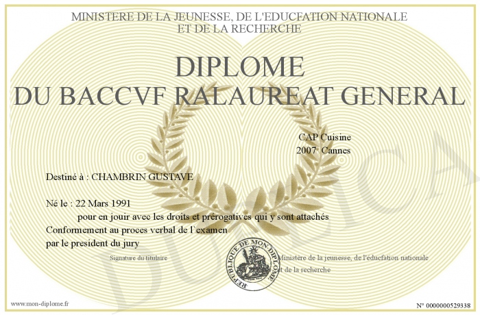 Envoyez par email votre Diplôme du baccvf ralaureat général personalisé