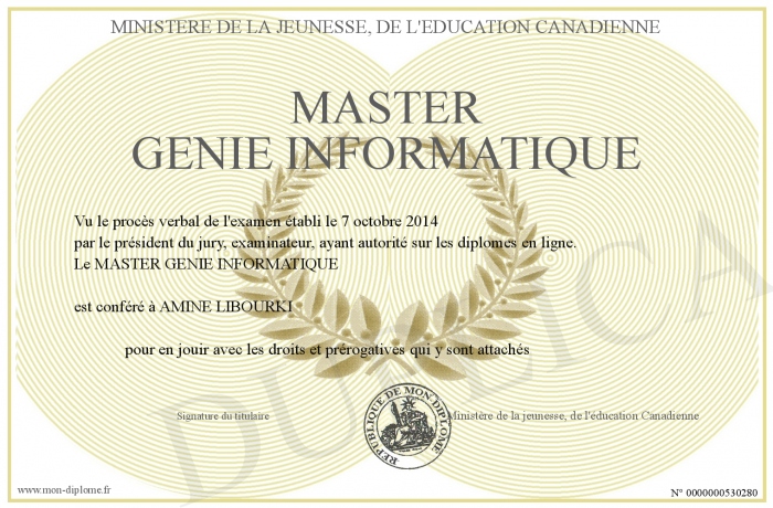 Envoyez par email votre MASTER GENIE INFORMATIQUE personalisé