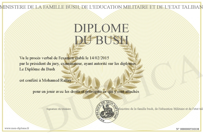 envoyé par le Ministère de la famille bush, de l'éducation Militaire et de l'etat taliban !