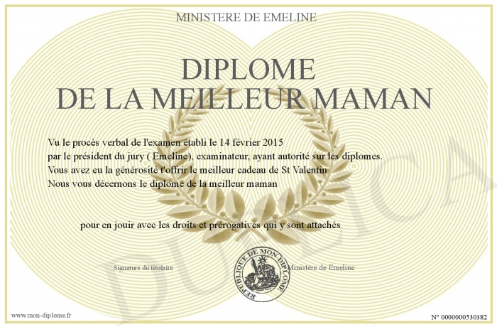 Envoyez par email votre Diplôme de la meilleur maman personalisé
