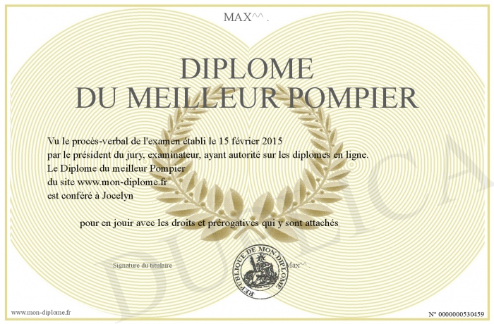 Envoyez par email votre Diplôme du meilleur Pompier personalisé