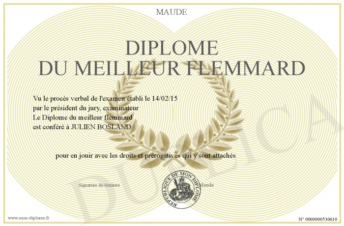 Envoyez par email votre Diplôme du meilleur flemmard personalisé