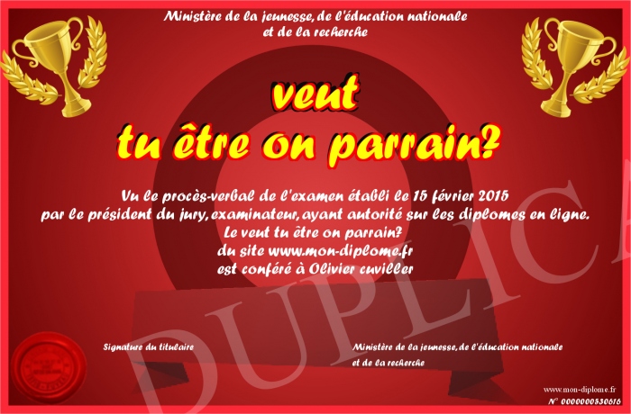 Envoyez par email votre veut tu être on parrain? personalisé