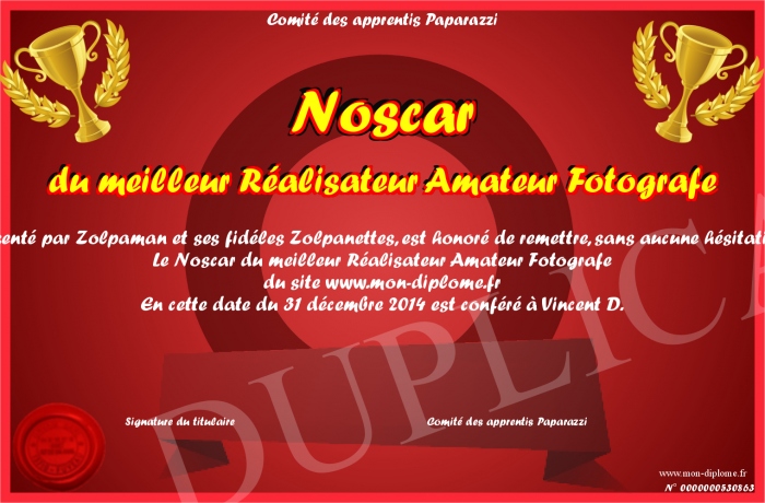 Envoyez par email votre Noscar du meilleur Réalisateur Amateur Fotografe personalisé